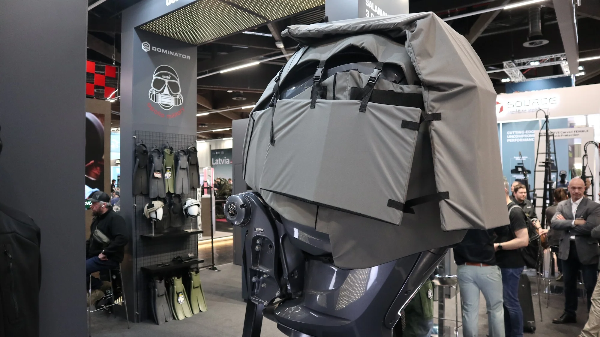 Außenbordmotoren von bemannten und unbemannten Überwasserfahrzeugen sind empfindliche Ziele. Werden sie getroffen, ist kein Fortkommen mehr möglich. Das Fahrzeug wird nutzlos, die Mission ist beendet. Auf der Enforce Tac zeigte Hutchinson Defense and Mobility Systems aus den USA am Stand der Dominator GmbH eine mögliche Lösung: Ballistischer Schutz für Außenborder.