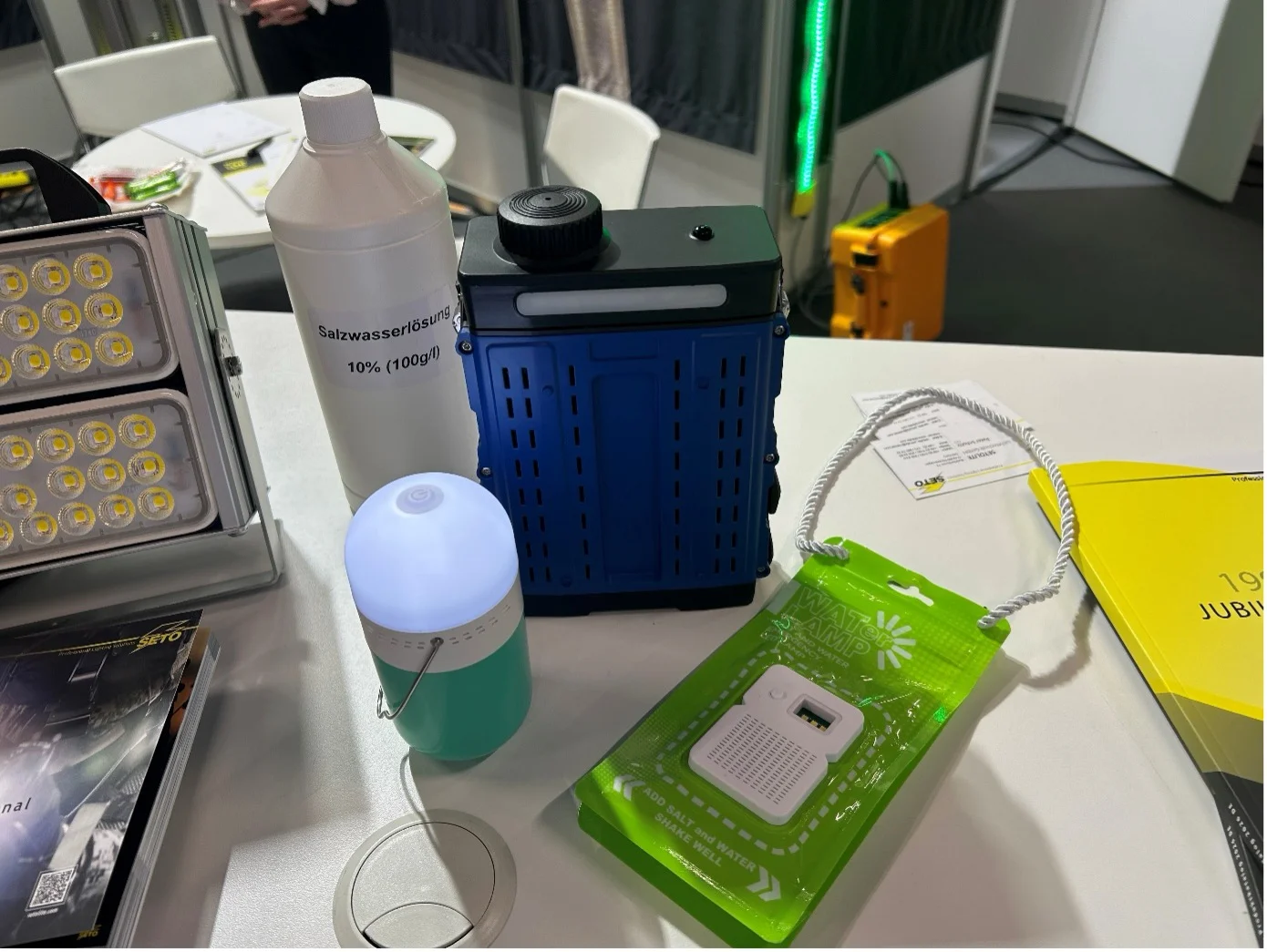 Vor Ort in Nürnberg zeigte SETOLITE verschiedene Varianten, von einer einfachen und kleinen Zelt- oder Campinglampe, über einen kleinen Strahler mit USB-Ladesteckern, bis hin zu größeren Salzwassergeneratoren, die Laptops oder mehrere Smartphones gleichzeitig für den professionellen Einsatz aufladen können. Diese Lampen oder Generatoren sorgen nicht nur für Licht im Zelt, unterwegs, im Auto, sondern bieten auch Strom zum Aufladen. Damit sparen sie Batterien und Gewicht, zumindest wenn man Wasser zur Hand hat und dieses nicht selbst transportieren muss.