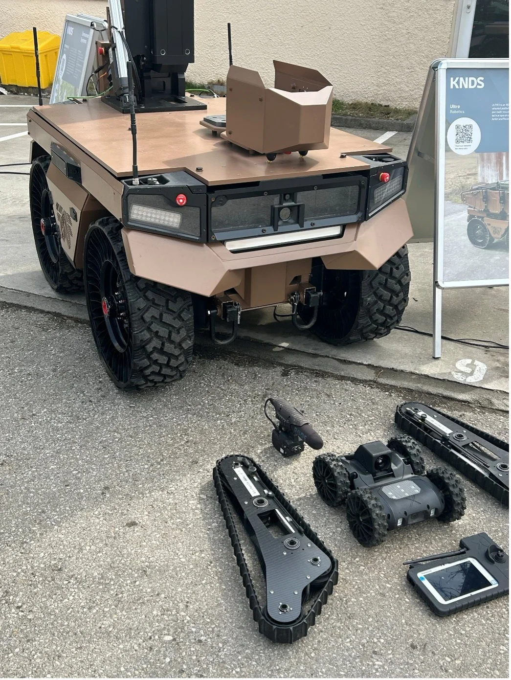 Deutlich größer ist das 100 Prozent elektrische, taktische Multi-Mission-Rad-UGV ULTRO. Dabei handelt es sich um eine 800 kg schwere, vollelektrische Plattform auf Rädern, die entwickelt wurde, um sowohl aufgesessene als auch abgesessene taktische Operationen zu unterstützen, einschließlich Direct Action und Reconnaissance Missionen.
