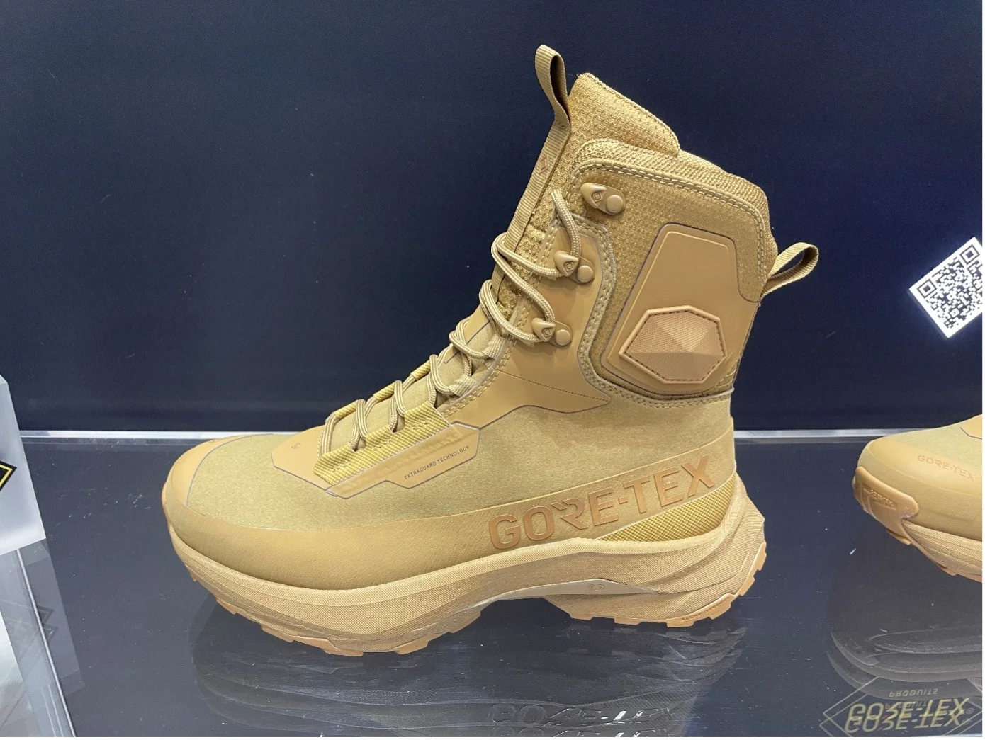 Das Thema Extraguard wird durch Gore bereits seit ein paar Monaten vorgestellt. Doch jetzt haben sich die Entwickler noch einmal drangemacht, das Gewicht weiter zu reduzieren. Im Zentrum dieser Konzeptstudie steht die GORE-TEX Extraguard Produkttechnologie, die genau auf diese Anforderungen ausgelegt ist. Das Obermaterial wird in Rollenform geliefert und zu größeren Zuschnitten verarbeitet, wodurch die Zahl der Nähte sinkt, weniger Nahtband benötigt wird und der wasserdichte Schutz verbessert wird. Dies eröffnet neue Konstruktionsmethoden und Designmöglichkeiten, um Druckstellen in stark beanspruchten Bereichen wie Ferse und Schaft zu reduzieren und gleichzeitig die Strapazierfähigkeit zu erhöhen. Das vom Sneaker-Design inspirierte Konzept kombiniert hohen Tragekomfort mit einem modernen Look – entscheidend für Einsatzkräfte, die gleichermaßen Wert auf Leistung und Komfort legen.