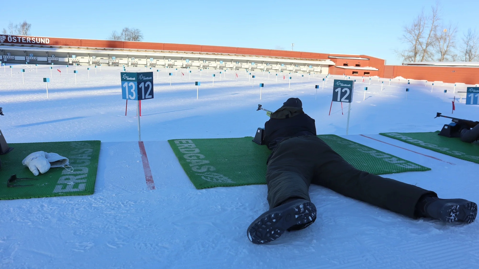 Wir schießen im Liegen. Direkt auf Schnee und Eis wird es kalt … sollte es kalt werden. Doch die NCU funktioniert. Ich liege auf dem eisigen Boden, ziele und … treffe alle fünf Scheiben. Erst dann merke ich, dass meine Hand friert. Den rechten Handschuh habe ich ausgezogen – er hätte nicht durch den Abzugsschutzbügel gepasst.