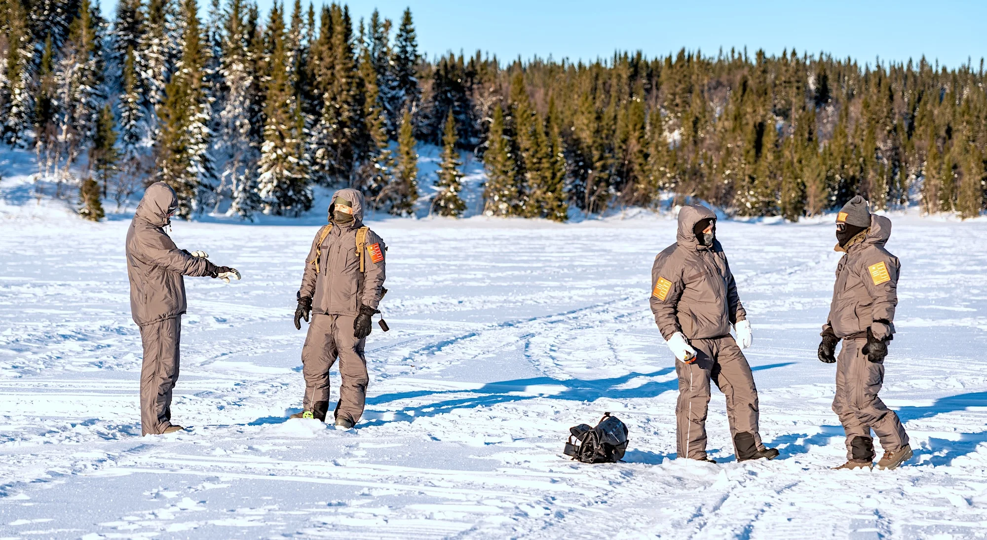 Ja, richtig gelesen: in allen Klimazonen – nicht nur in der Arktis. Denn die Nordic Combat Uniform verfügt auch über spezielle Lagen, die für Wüsten- und für tropisches Klima entwickelt wurden. In der schwedischen Winterkälte bin ich jedoch froh um die arktische Versioon der NCU. Sie wurde mir und den anderen von den beteiligten Unternehmen ausgehändigt.