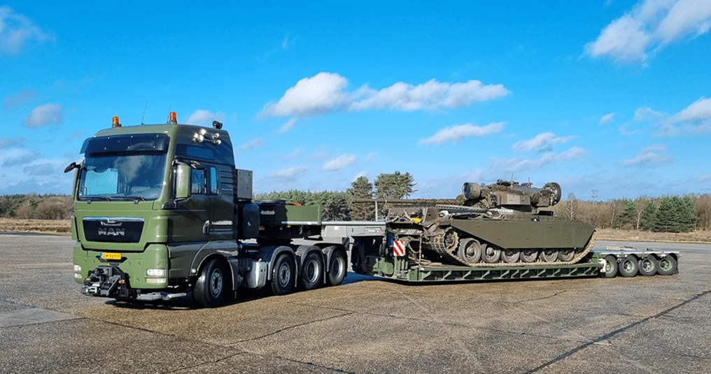 Es ist nicht das erste Mal, dass MAN-Zugmaschinen Schwerlast-Auflieger von Nooteboom ziehen – Hier ein Archivbild eines Transportes für die königliche Armee der Niederlande.