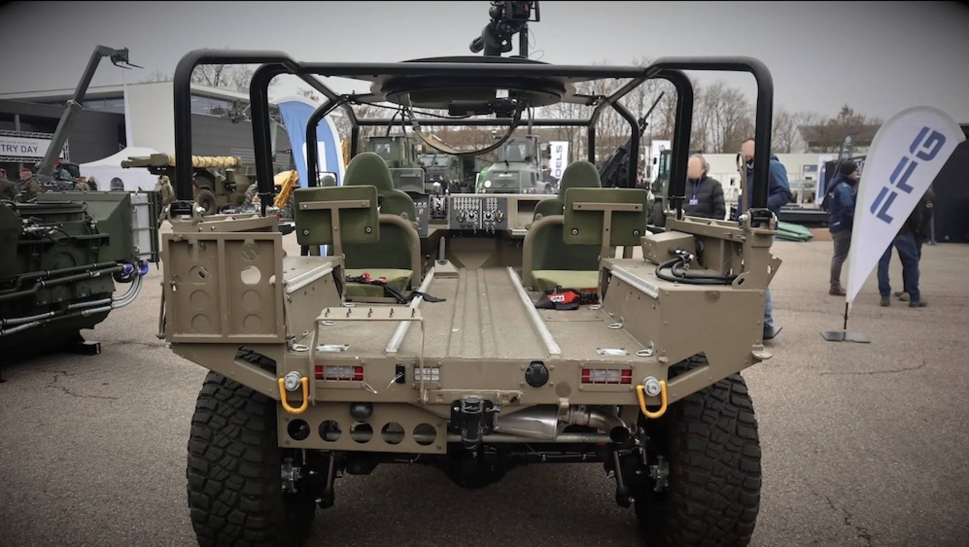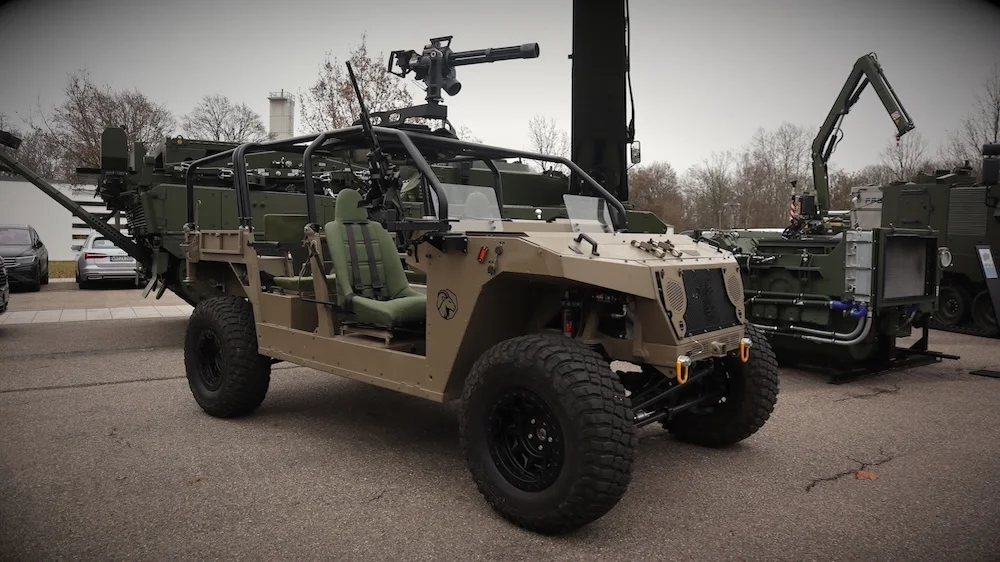 Die offene Plattform erlaubt eine flexible Missionskonfiguration. Gezeigt wurde in Ingolstadt eine Variante mit Dachlafette und zusätzlicher Sekundärbewaffnung für den Beifahrer. Eine abnehmbare Winde, Befestigungspunkte an mehreren Positionen sowie ein klappbarer Überrollbügel erweitern die Einsatzmöglichkeiten. Besonderer Wert wurde außerdem auf die Nutzung handelsüblicher Ersatzteile gelegt, was Wartung und Logistik vereinfacht.