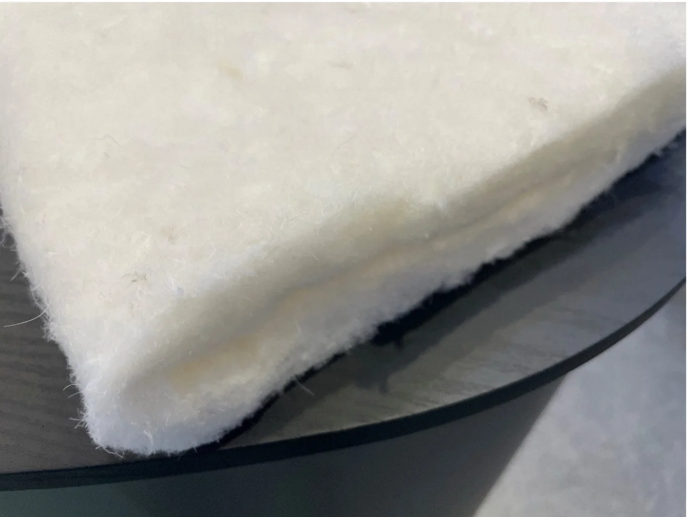 Meistens werden Kunstfaserisolierungen mit Aerogel gemischt und ein Teil bleibt halt hängen. In der Regel nur so 15 bis 20 Prozent. Der Effekt ist also überschaubar. Wir haben ein Trägermaterial, welches mit Aerogel getränkt und in einem aufwendigen Verfahren dann getrocknet und gefinished wird.